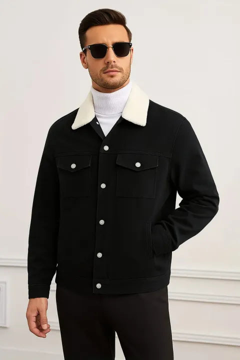 Men's Winter Jacket Thick Thermal Cotton Warm Fleece Lined Coat Trucker Lapel Work Cargo Jackets for Men